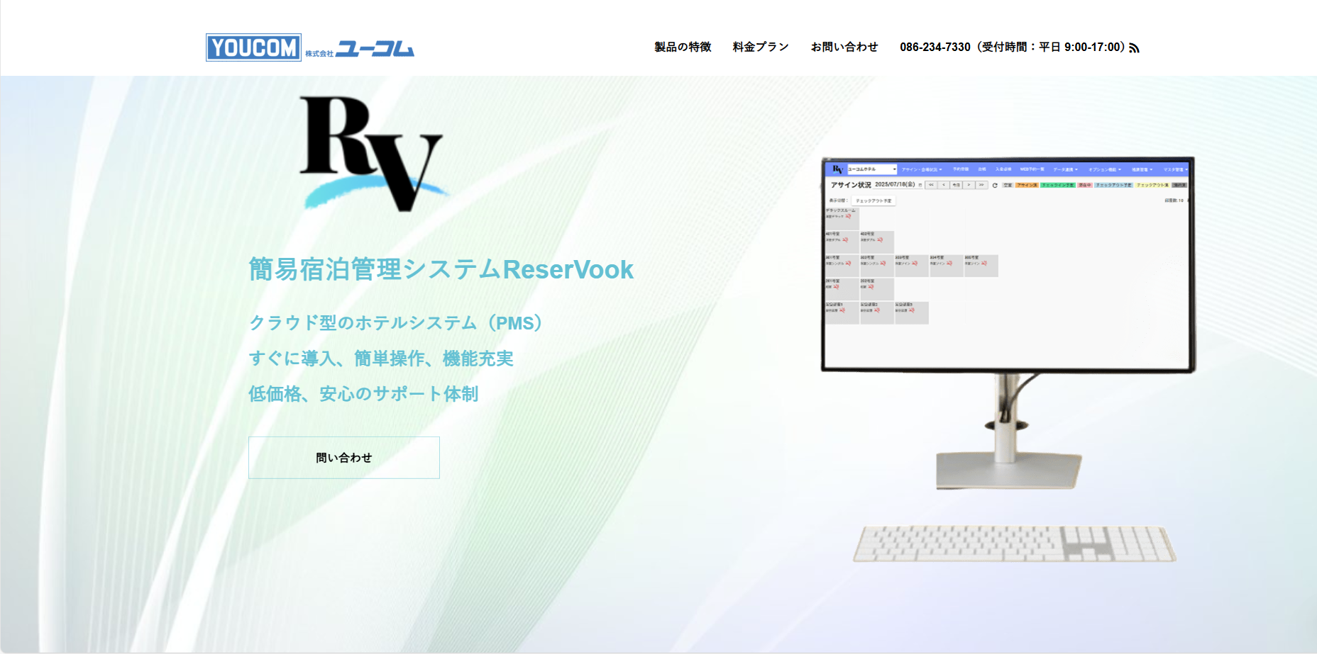ReserVook(リザーブック)特設サイトオープン 2025.10.23 お知らせ・展示会情報 新着情報 ユーコムの中小規模宿泊施設様向け宿泊管理システム。 クラウド型サービスなので、すぐに導入、簡単操作、機能充実、さらに低価格。 詳細はこちらからご覧ください。